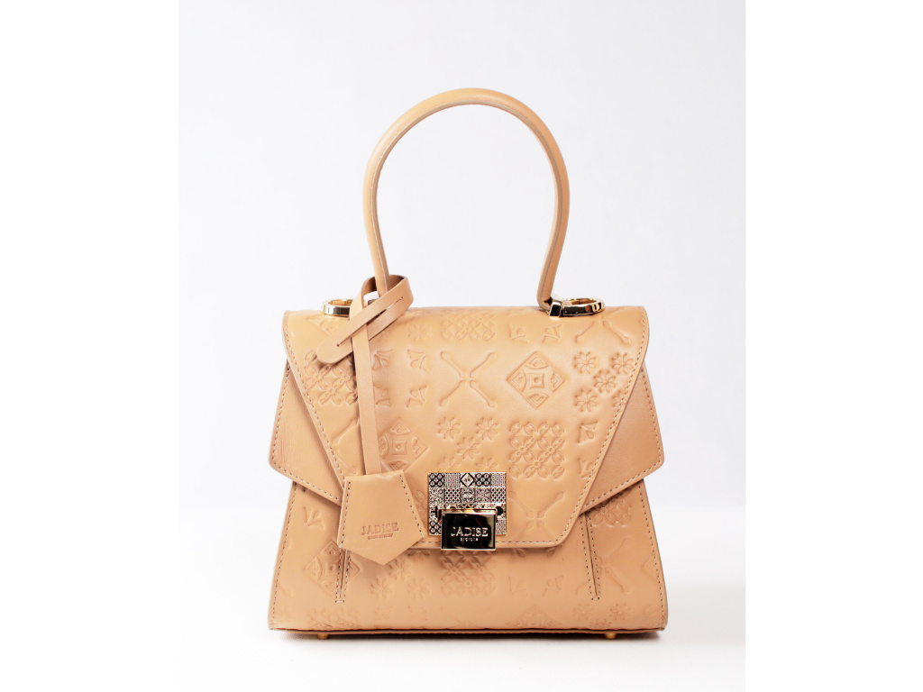 hnědé barvy. V kůži jsou vytlačeny motivy typické sicilské majoliky. Zavřít se dá díky elegantnímu pákovému uzavírání s logem JADISE.