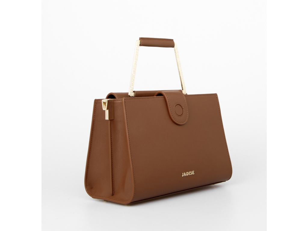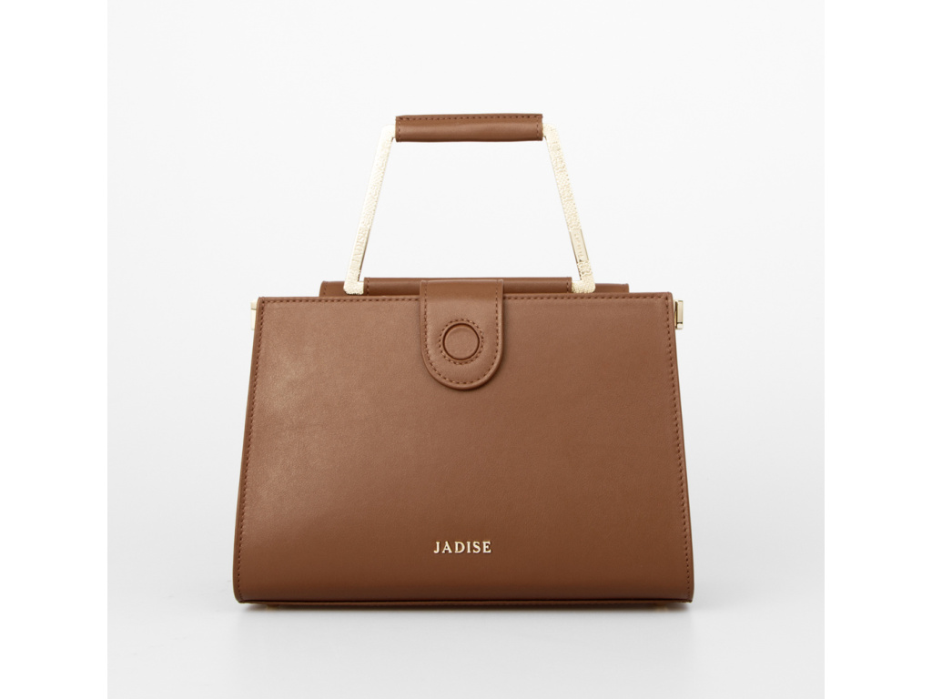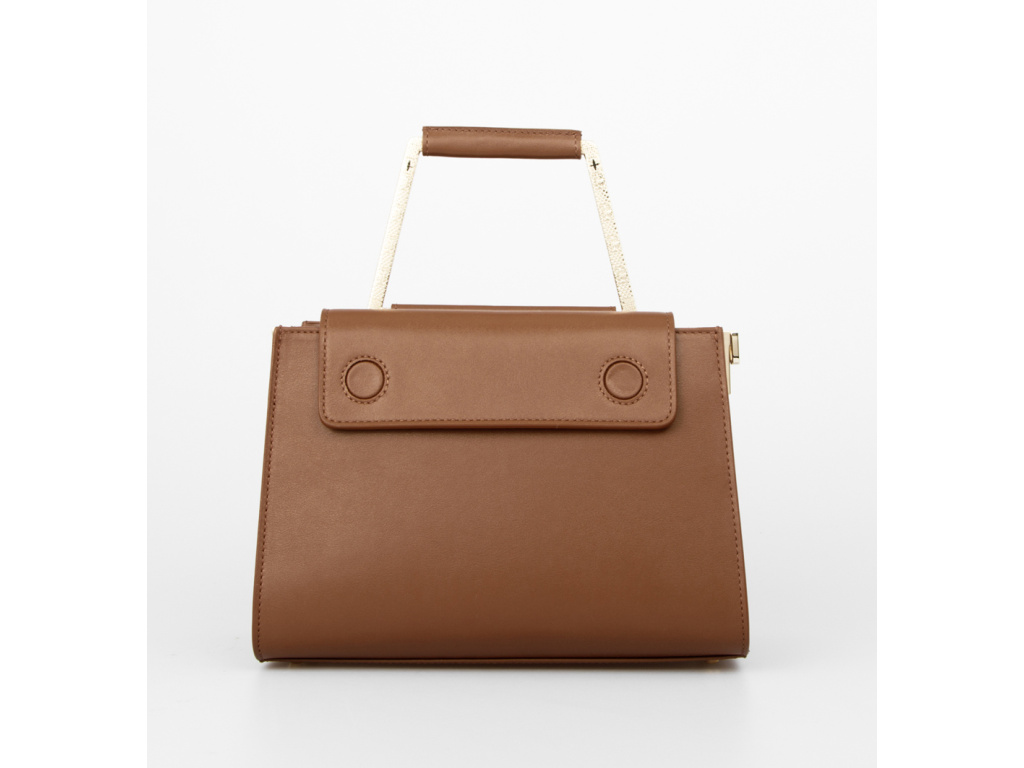 Kabelka je vyrobena z hladké hovězí kůže hnědé barvy.